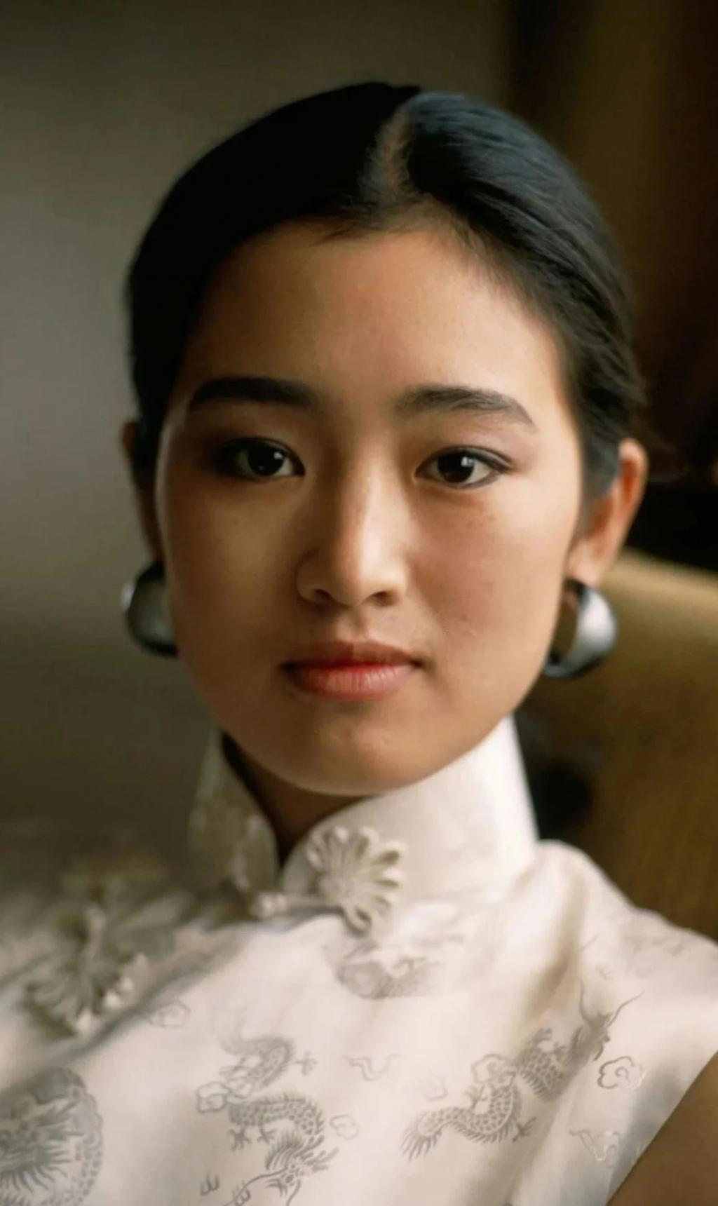 1988 年,23 岁的巩俐首次亮相戛纳红毯,她身穿珠光白暗纹提花旗袍,展现青涩与东方内敛,留下珍贵照片。